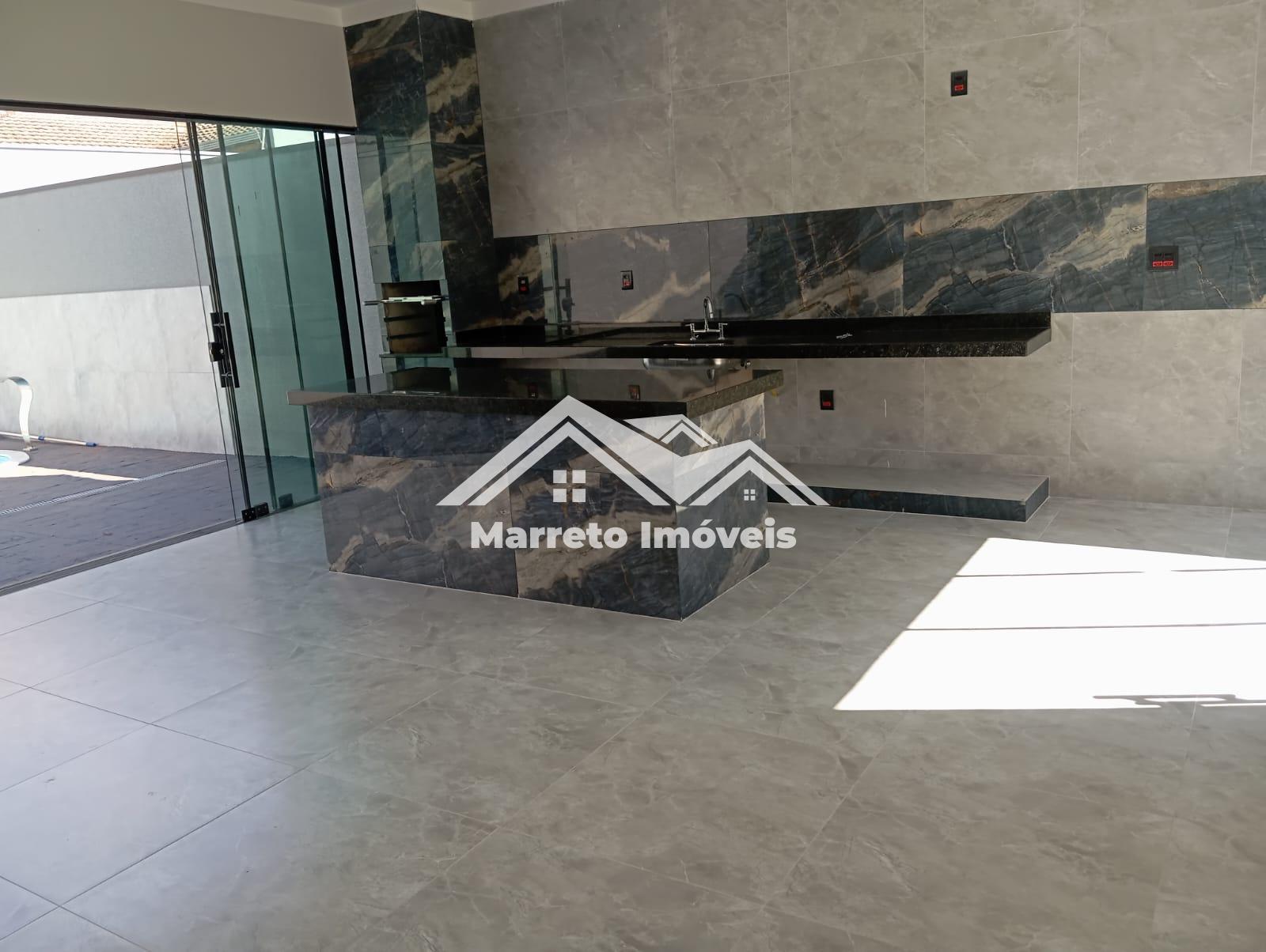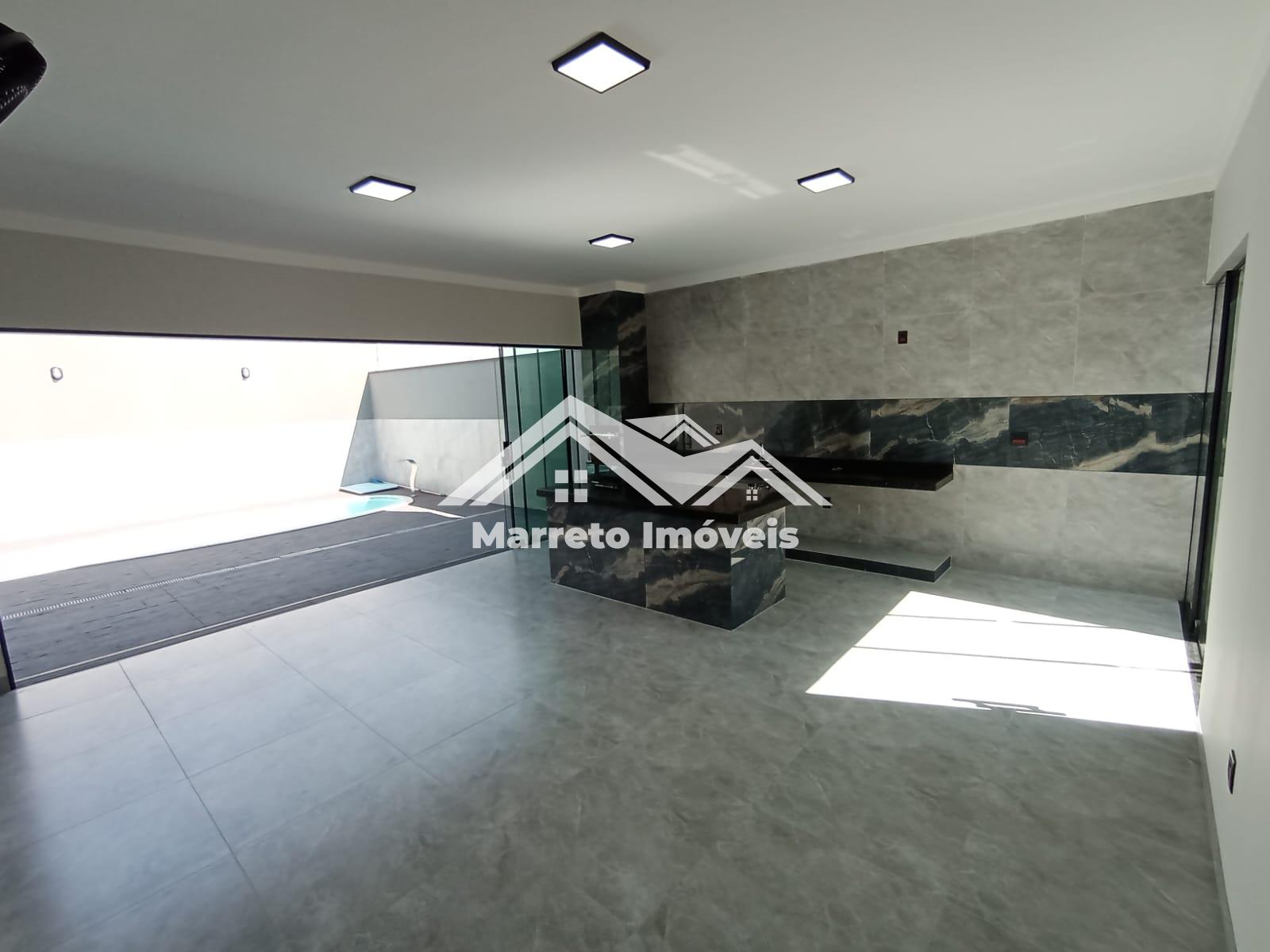 Casa à venda no bairro Centenário em Olímpia, com 3 dormitórios sendo 1 suíte master com closet, banheiro social, sala com pé direito alto, cozinha gourmet com churrasqueira e cooktop, lavanderia, lavabo, piscina, garagem coberta e portão eletrônico. Área construída de aproximadamente 155 m². Valor R$ 810 mil, aceita financiamento.